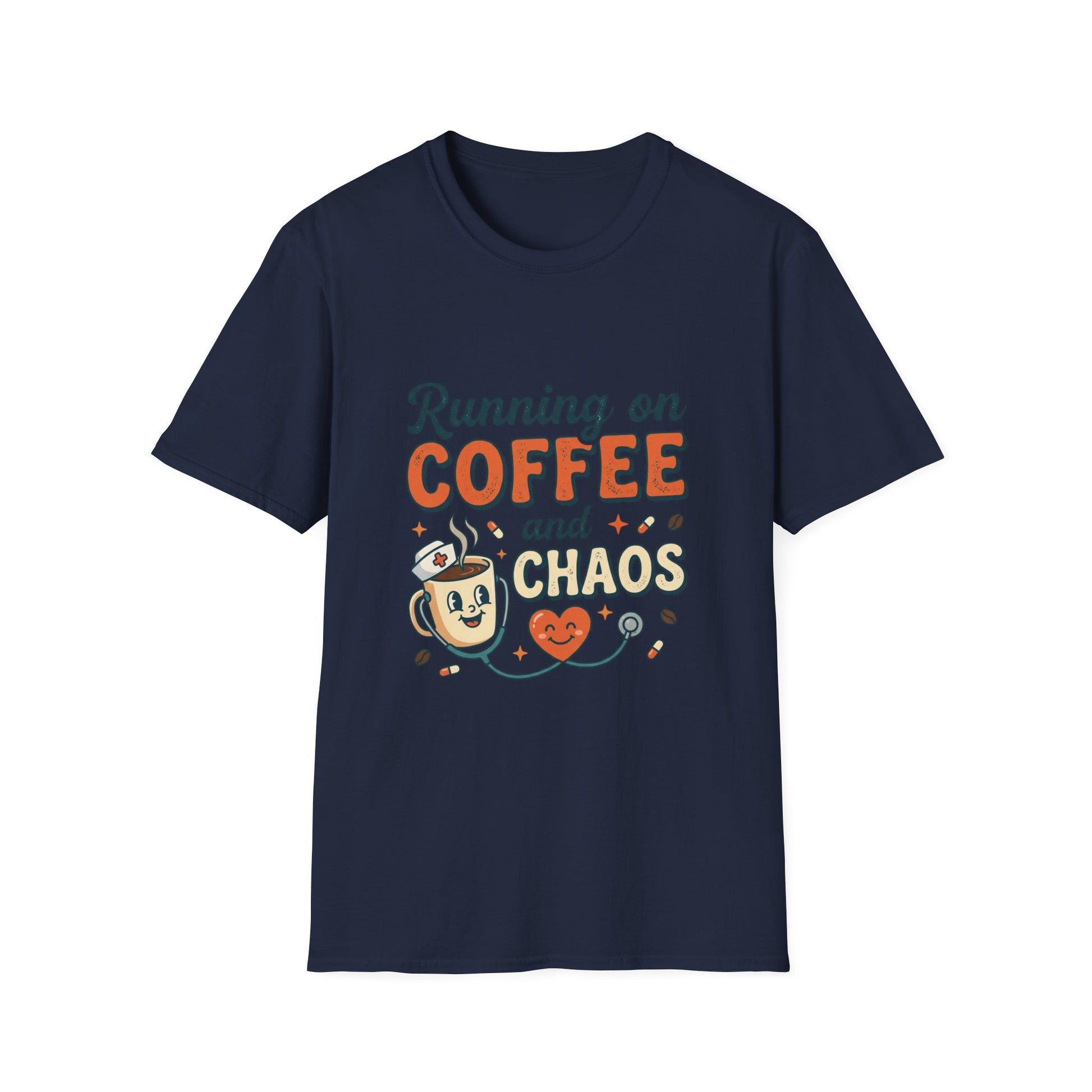 This lightweight cotton tee carries a playful, hand-illustrated design that reads “Running on Coffee and Chaos.” Soft, slightly vintage colors and a cheerful mug-and-heart character give it a warm, lived-in feel — the kind of shirt you reach for on rushed mornings, studio days, or relaxed weekends. The clean crew neck and classic fit make it easy to layer under a cardigan or wear on its own. Wear it to announce your beautiful, messy energy with a wink and a smile.